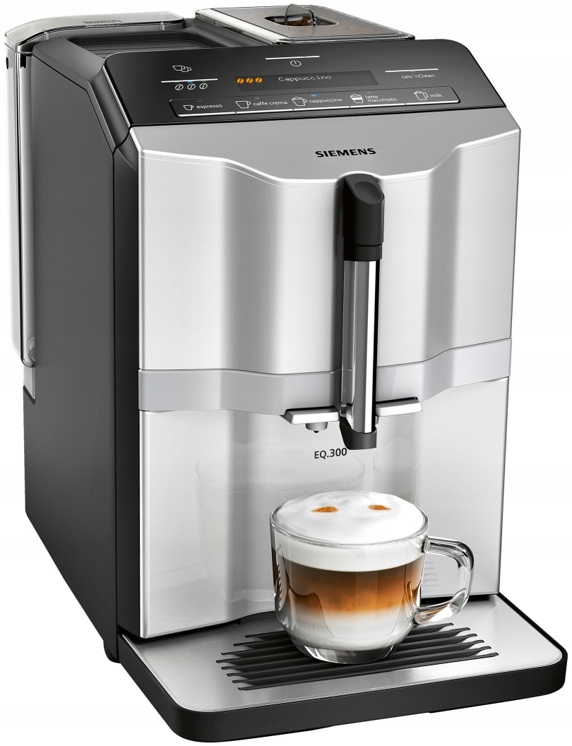 Automatyczny ekspres do kawy EQ.300 w kolorze srebrnym. Wygodna obsługa i wspaniały smak kawy dzięki unikalnej technologii iAroma System, wszystkie napoje dostepne za przyciśnięciem jednego przycisku - nieważne czy jest to espresso, cappuccino czy latte macchiato.