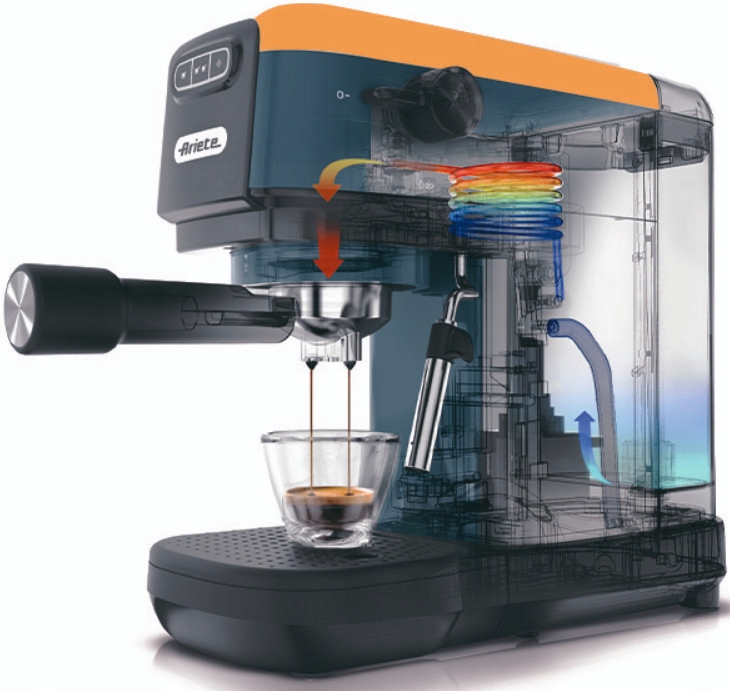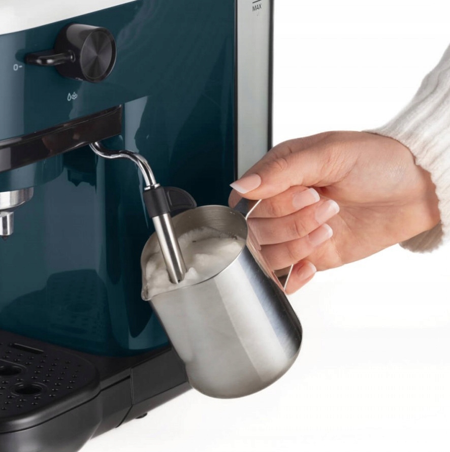 Ekspres Ariete Smart Slim Espresso wykorzystuje technologię Thermocream Perfect Crema, która gwarantuje idealnie gęstą i kremową warstwę na espresso. Dzięki ciśnieniu 15 bar, kawa zyskuje intensywny aromat i głęboki smak, niezależnie od tego, czy użyjesz mielonych ziaren, czy wygodnych saszetek E.S.E. To idealny wybór zarówno dla miłośników klasycznego espresso, jak i dla tych, którzy uwielbiają kawy mleczne.