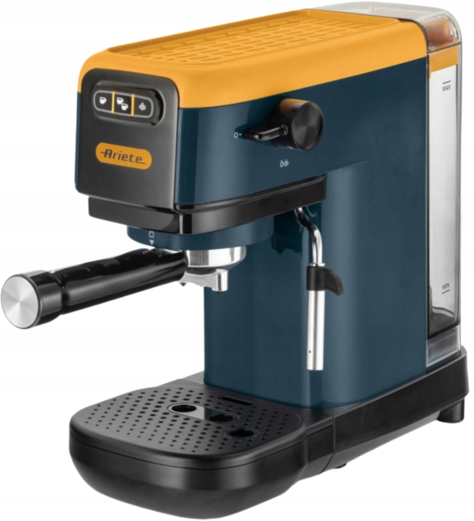 Z szerokością zaledwie 15 cm, Ariete Smart Slim Espresso to idealne rozwiązanie do małych kuchni. Smukła konstrukcja i nowoczesny design w kolorze Mango Yellow sprawiają, że urządzenie nie tylko spełnia swoją funkcję, ale również stanowi dekoracyjny element kuchennego wystroju.