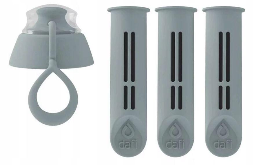 Filtry do butelek Dafi Soft lub Solid o wydajności około 150 l wody. Zestaw zawiera 3 sztuki.