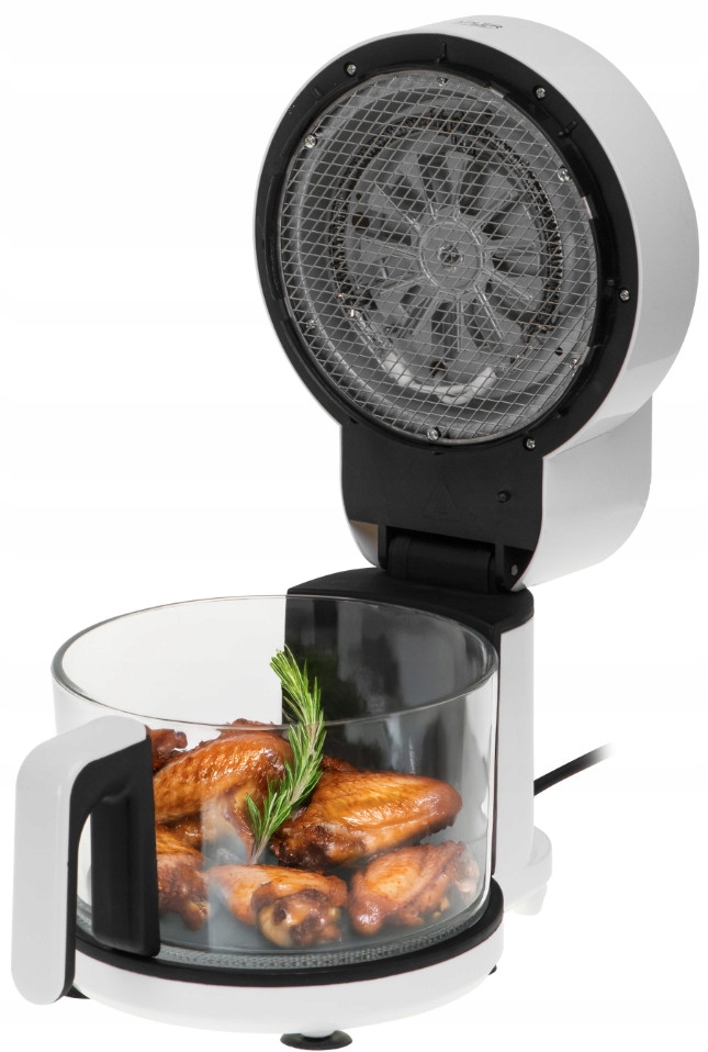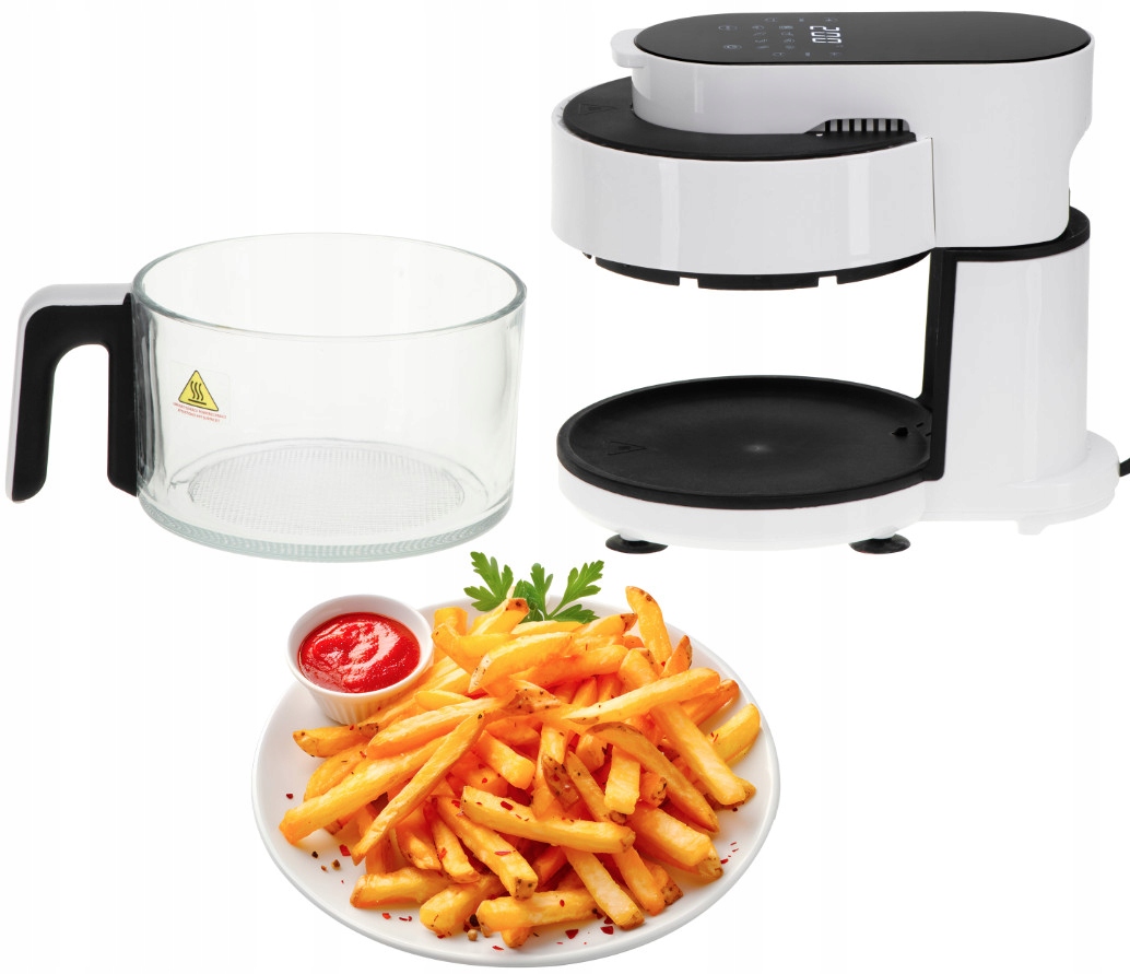 - Cechy dodatkowe: 8 programów: Skrzydełka kurczaka, Kiełbasa, Frytki, Tarta, Krew|Długość przewodu zasilającego: 100cm, Stopki antypoślizgowe|Moc Maksymalna: 1400W, Moc Nominalna: 1200W|Piekarnik beztłuszczowy, Technologia konwekcyjna, Grzałka halogenowa|Pojemność: 3 litry, Szklana misa, Zakres temperatur: 80–200°C|Regulacja czasu do 30 minut, Czytelny biały wyświetlacz LED, Panel dotykowy|Wyjmowany ruszt, Nienagrzewający się uchwyt, Silikonowa podkladka, Automatyczne wyłączanie|Wymiary urządzenia: 35.0 x 20.5 x 25,0 cm