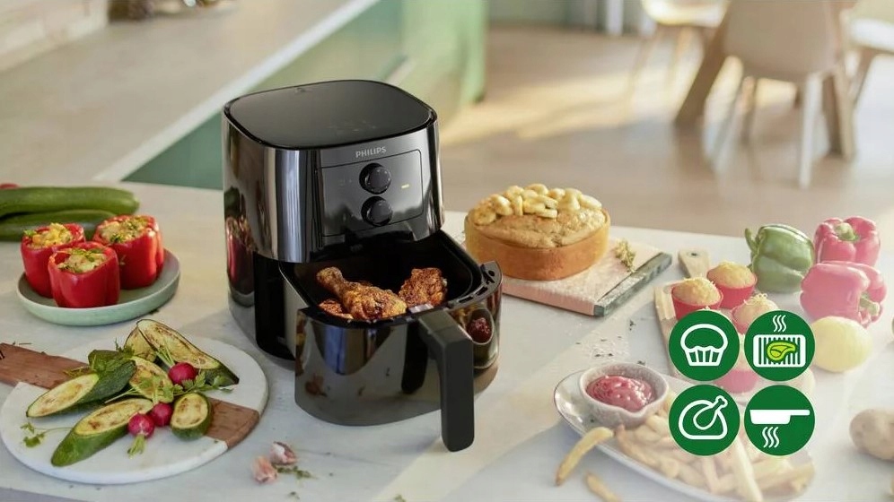 Urządzenie Airfryer firmy Philips oferuje szeroki wachlarz możliwości: smażenie, pieczenie, grillowanie, prażenie, suszenie, podpiekanie, rozmrażanie, odgrzewanie i nie tylko.