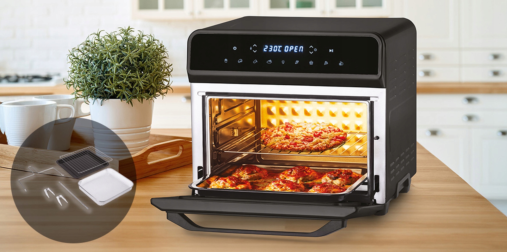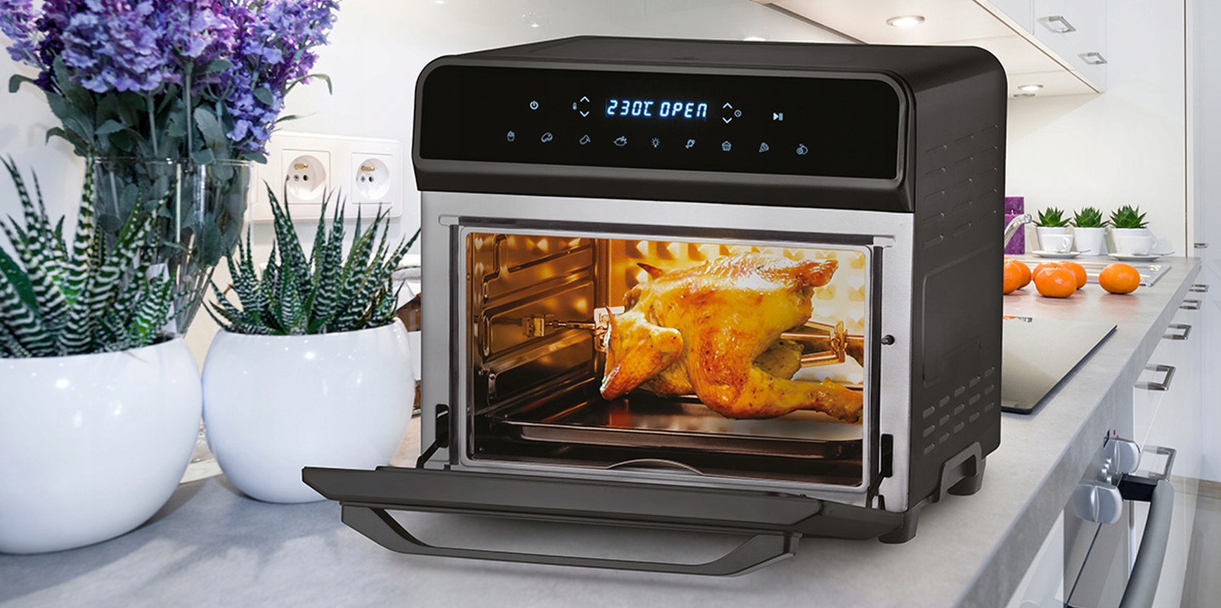 - 8 automatycznych programów: frytki, stek, skrzydełka z kurczaka, rożen (cały kurczak), ryby, pieczenie, pizza i suszenie
