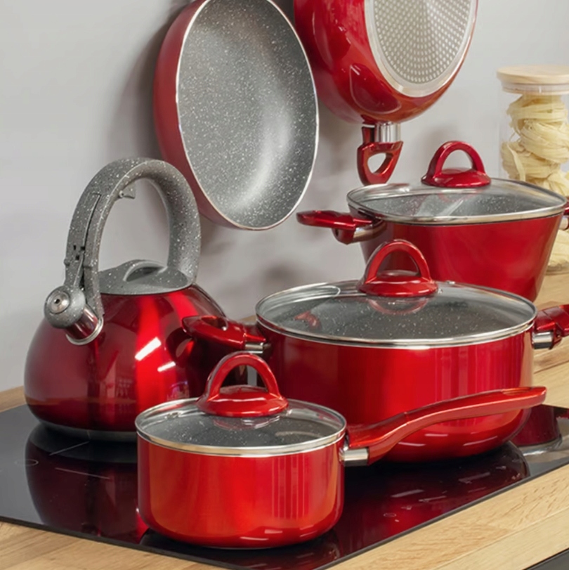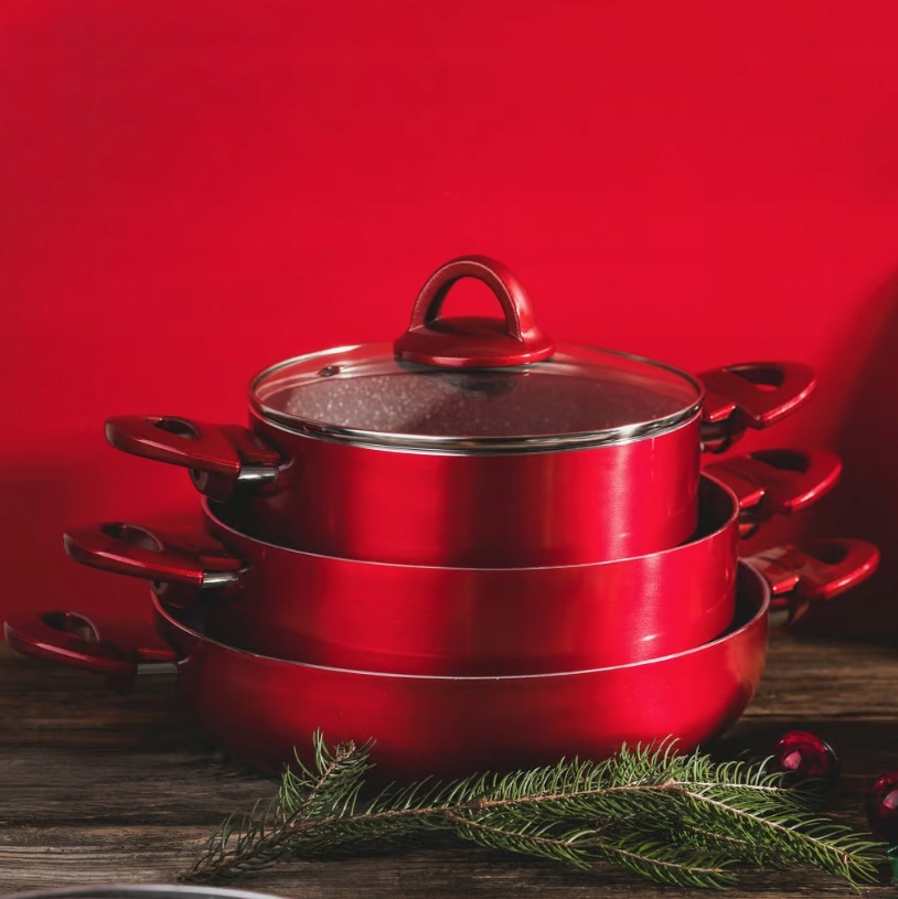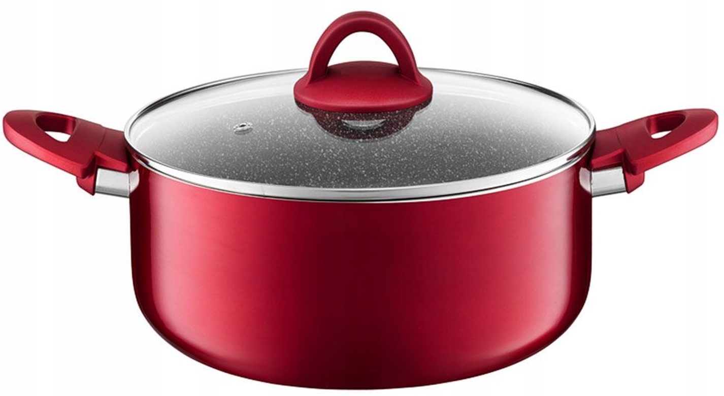 - Informacje dodatkowe:możliwość używania na kuchni indukcyjnej|nienagrzewające się uchwyty|pokrywka w zestawie