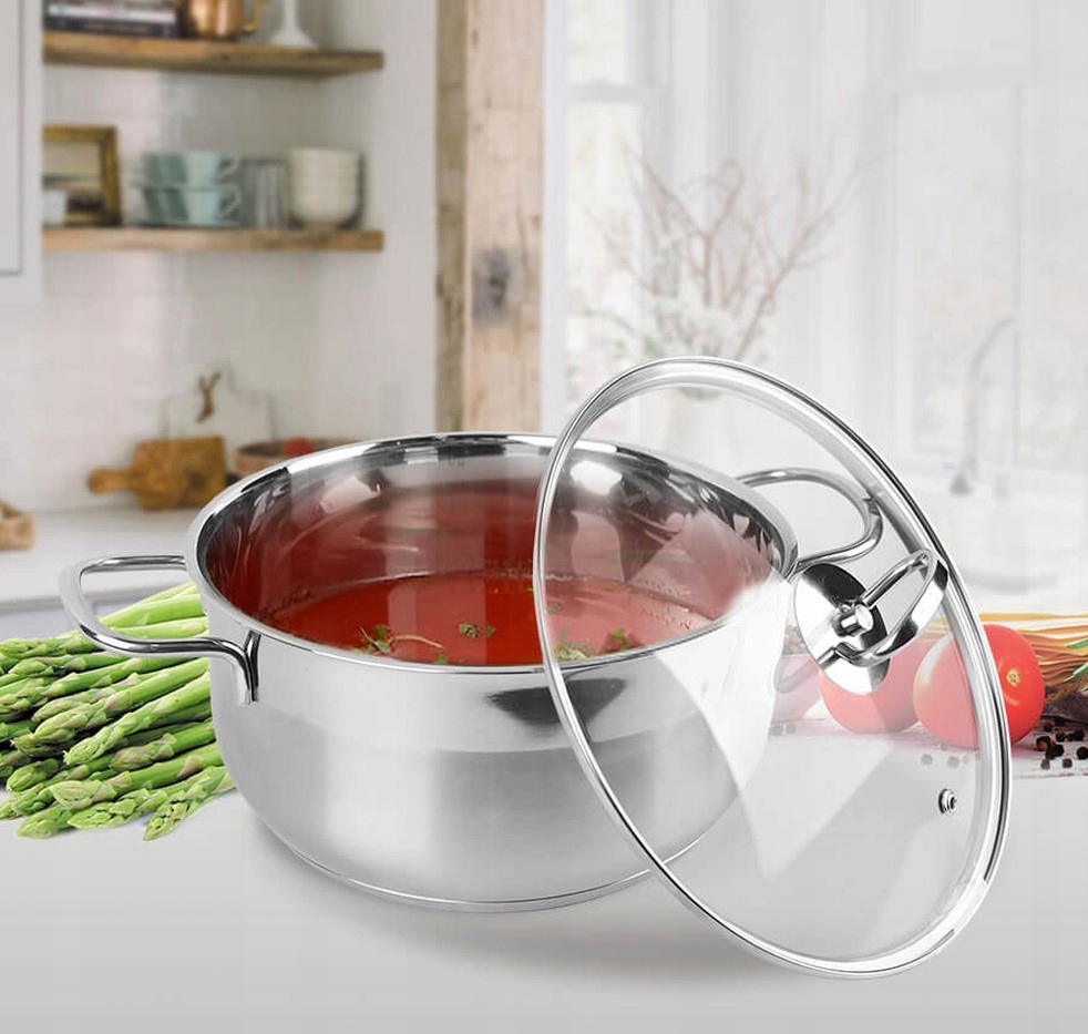 Garnek ze stali nierdzewnej o pojemności 5,5l nadający sie do wszystkich rodzajów kuchenek w tym indukcyjnych.