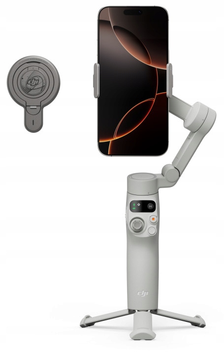 - Załączone wyposażenie: DJI Osmo Mobile 7|Etui|Kabel zasilający (USB-C do USB-C, 50 cm)|Magnetyczny uchwyt DJI OM Magnetic Phone Clamp 4
