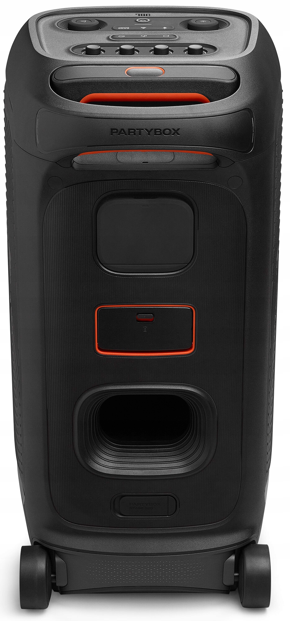 - Cechy dodatkowe: AI Sound Boost|Odporność na zachlapanie|Połączenie wielu głośników przez Auracast|Teleskopowy uchwyt i szerokie, solidne kółka|Wymienny akumulator