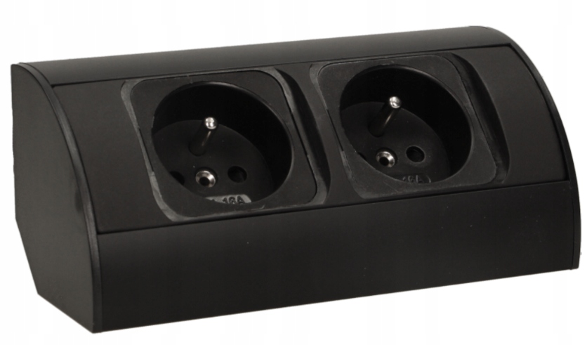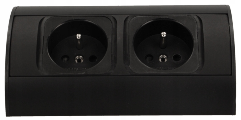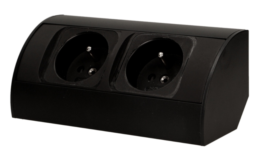 Zestaw dwóch gniazd sieciowych z uziemieniem i przesłonami torów prądowych, idealne, do montażu w szafkach, gablotach i witrynach.