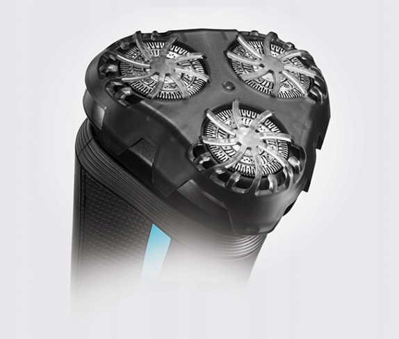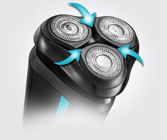 Specjalne głowice przycinają włosy we wszystkich kierunkach, zapewniając jeszcze bardziej wydajne golenie, a obrotowa głowica oraz specjalne ostrza Dual Track dopasują się do kształtu Twojej twarzy.