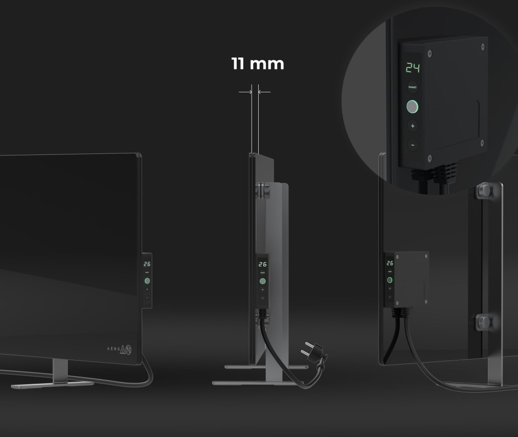 Nowoczesne grzejniki Aeno zyskały nową generację, wyposażoną w wyświetlacz LED, który prezentuje bieżącą i wybraną temperaturę oraz umożliwia ręczne sterowanie. To dodatkowa opcja kontroli za pomocą przycisków. Teraz masz możliwość ręcznego dostosowywania temperatury, wybierania trybu inteligentnego oraz monitorowania aktualnej temperatury grzejnika.