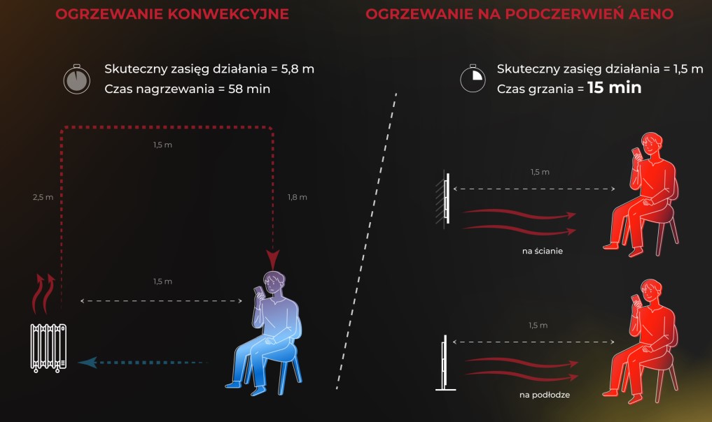 Dzięki zastosowaniu ogrzewania podczerwienią, ciepło jest równomiernie dystrybuowane w pomieszczeniu poprzez bezpośrednie przekazywanie go do obiektów, powierzchni ścian i podłogi. To stanowi kontrast wobec tradycyjnego procesu konwekcji, gdzie ciepłe powietrze jest przemieszczane.