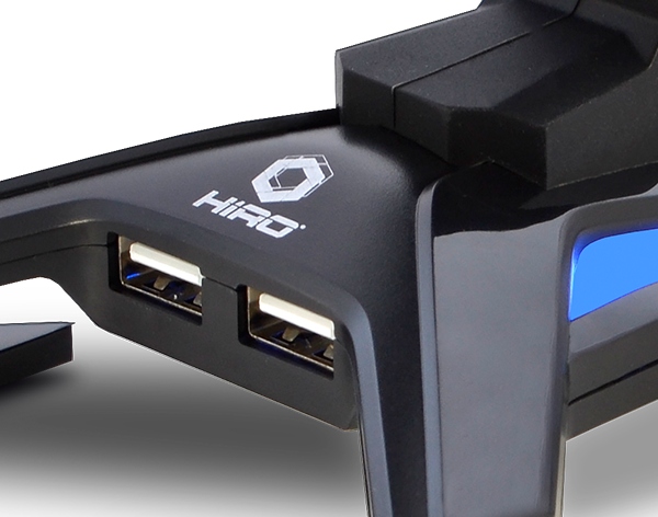 Dodatkowym atutem bungee HIRO® Atlas, jest wbudowany HUB na dwa porty USB! Dzięki temu możesz podłączyć do niego zarówno mysz jak i klawiaturę. Tworzy to świetny, całościowy port komunikacyjny dla gracza, oszczędzając porty w komputerze i ułatwiając odpięcie myszy lub klawiatury. Hub możesz wykorzystać również do podłączenia słuchawek czy mikrofonu HIRO® na USB.