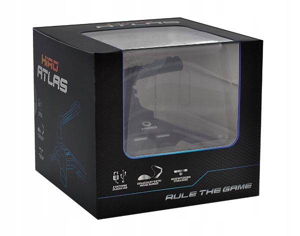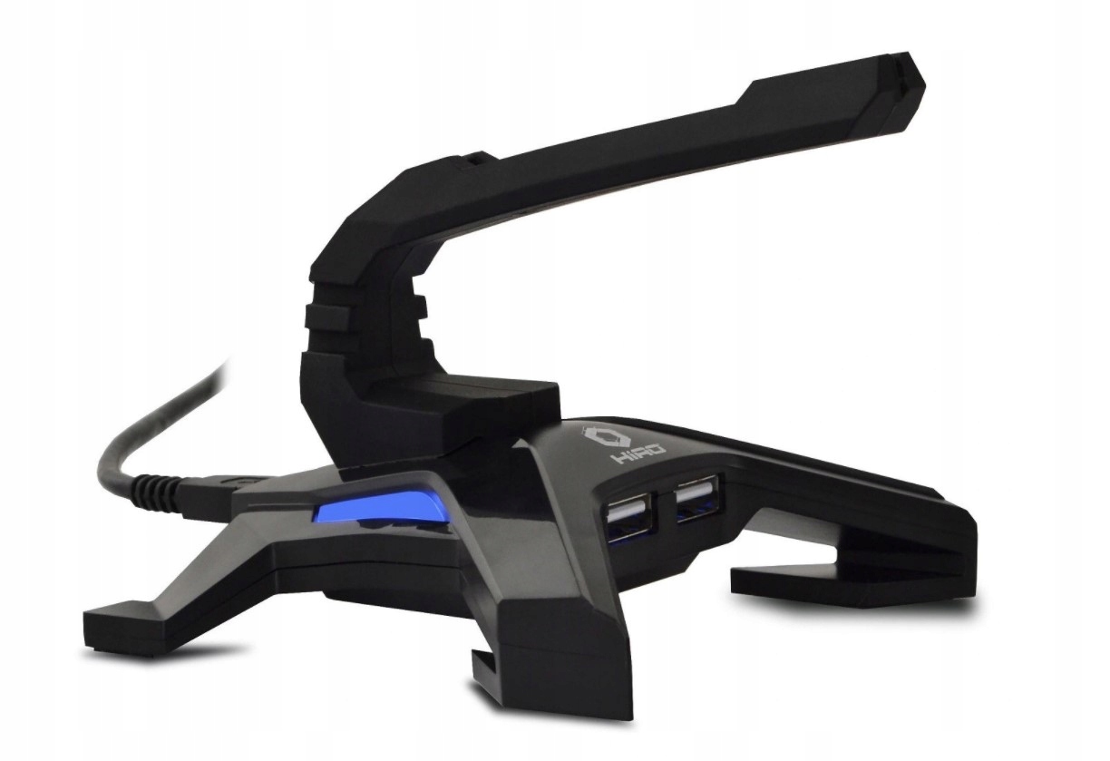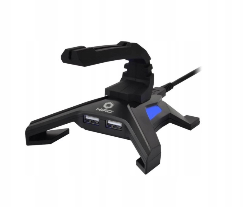 Hub Hiro Atlas z wbudowanym uchwytem na przewód myszy. Wyposażony w 2 porty USB 2.0. Podświetlenie w kolorze niebieskim.
