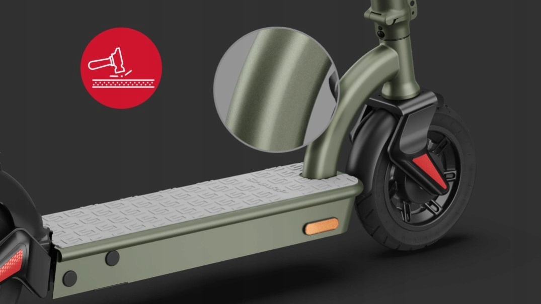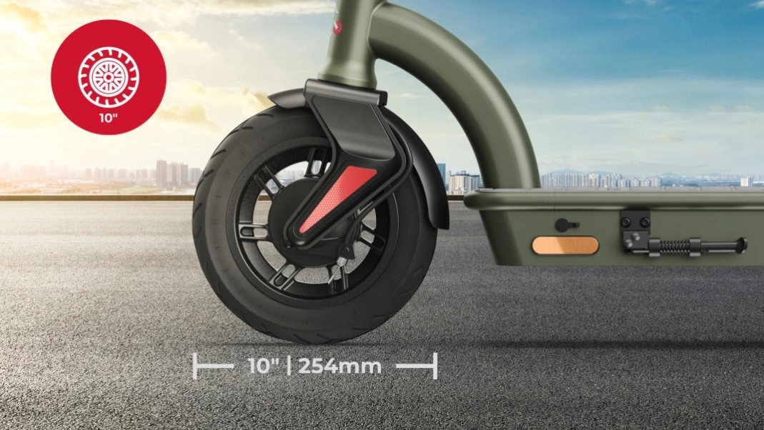 Duże, pompowane 10-calowe koła zapewniają doskonałą stabilność, większą amortyzację podczas jazdy oraz łatwość radzenia sobie w przypadku pęknięć i zanieczyszczeń. Koła tego typu zapewniają wspaniały komfort jazdy, który docenisz podczas dłuższych tras.
