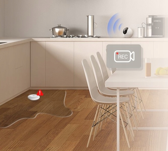 Szybkie działanie zapobiega stratom. Kiedy tylko poziom wody przekroczy 0,5 mm, czujnik T10C natychmiast wyśle alarm przez aplikację i za pośrednictwem bramki domowej włączy głośny sygnał dźwiękowy w podłączonym domu. Takie ostrzeżenia mobilne i dźwiękowe będą powtarzane do czasu, aż użytkownik w pełni uświadomi sobie zagrożenie.