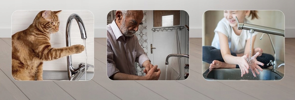 Konstrukcyjnie T10C zapewnia pomoc każdemu, kto znajduje się w domu. Niezależnie od tego, czy potrzebujesz dodatkowego poziomu ochrony członków rodziny w podeszłym wieku, którzy żyją samotnie, czy chcesz mieć pewność że dzieci, ani zwierzęta domowe nie bawią się wodą, kiedy nie ma Ciebie w pobliżu, pomocny będzie czujnik T10C.