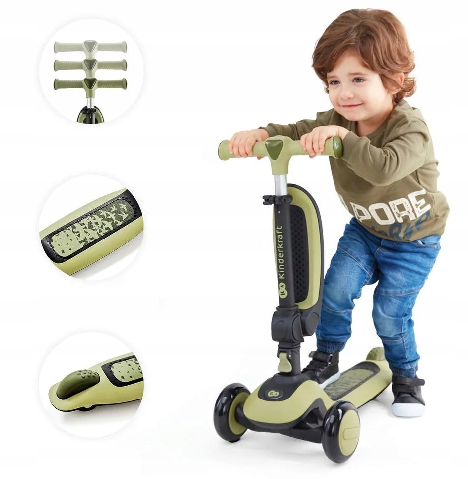 Jeździk 2w1 Kinderkraft Halley Trójkołowa hulajnoga Rowerek biegowy Zielony