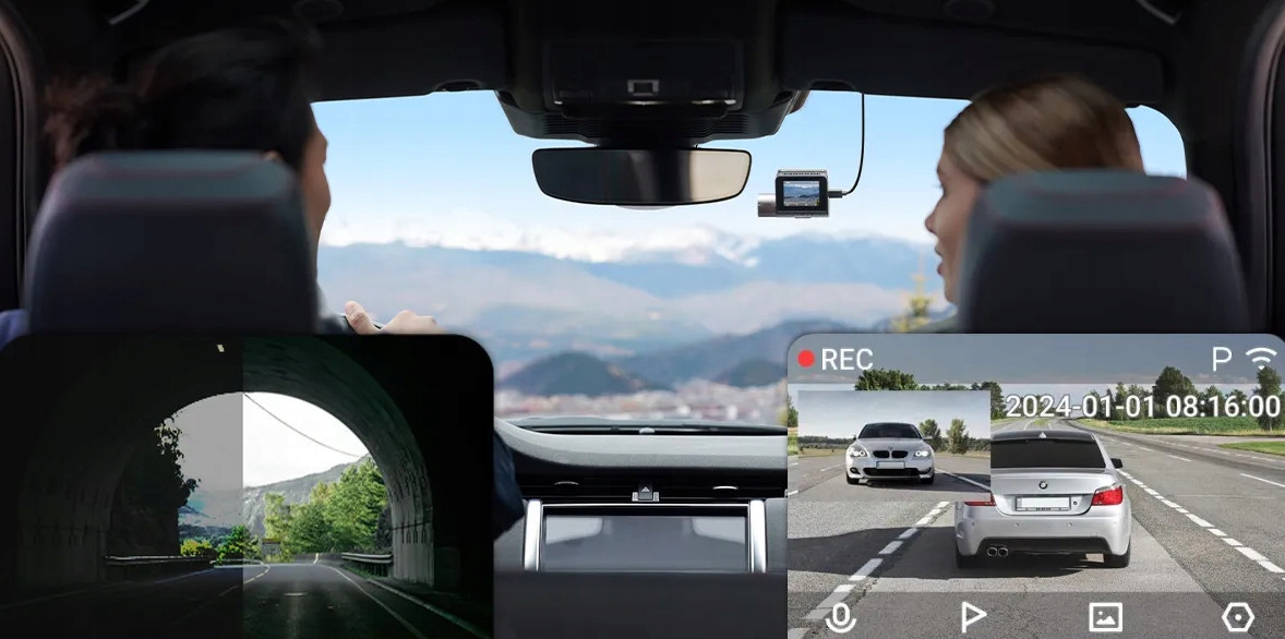 Dzięki trybowi picture-in-picture (obraz w obrazie), kamera A510 oferuje możliwość jednoczesnego wyświetlania obrazu z dwóch kamer, przedniej oraz tylnej, na jednym ekranie, co oznacza, że możesz mieć kompleksowy podgląd sytuacji podczas jazdy zarówno z przodu, jak i z tyłu pojazdu.