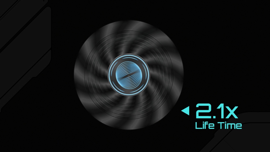 Awaria samych wentylatorów to często spotykany problem sekcji chłodzenia karty graficznej. Gigabyte GeForce RTX 4060 Ti EAGLE OC 8G jest jednak odpowiednio zabezpieczoną kartą graficzną – wszystko za sprawą grafenowego nanolubrykantu. Jego obecność przekłada się na wydłużenie łożyska wentylatora (części szczególnie narażonej na uszkodzenia) o około 2,1 raza. Sprawia to, że żywotność w ten sposób zrównuje się z klasycznym podwójnym łożyskiem kulkowym, ale jest od niego znacznie cichszym rozwiązanie.