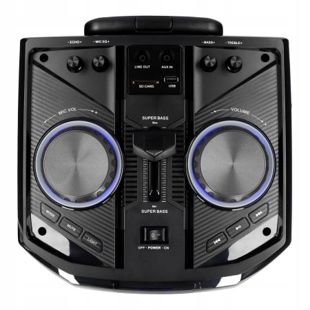 Moc maksymalna głośnika wynosi 600 W, dzięki czemu możliwe jest nagłośnienie całkiem sporej imprezy. Duża, 10 calowa membrana głośnika niskotonowego w połączeniu z funkcją Super Bass spełni oczekiwania wszystkich miłośników niskich częstotliwości. Z kolei wyposażenie urządzenia w equalizer z sześcioma trybami (Rock, Classic, Jazz, Pop, Country i Flat) sprawia, że dźwięk można optymalnie dopasować do klimatu spotkania. Taki sposób skomponowania funkcji i możliwość skorzystania z opcji oświetlenia LED pozwalają porządnie podkręcić charakter imprezy i wczuć się w prawdziwie dyskotekowe klimaty. PS6 gwarantuje bowiem czysty, mocny dźwięk i oświetlenie w stylu disco.