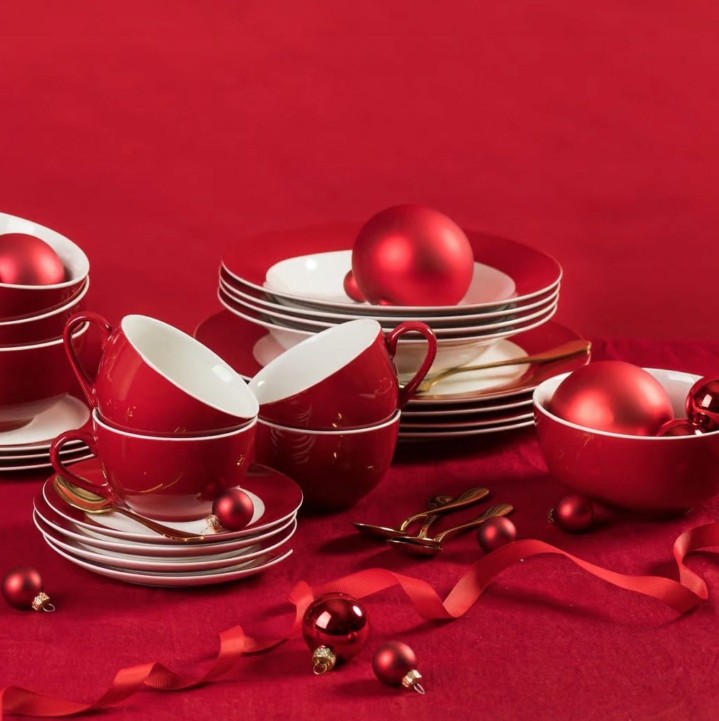 Uniwersalny komplet kawowy 12-elementowy z ponadczasowej kolekcji Aura Red o klasycznym kształcie. Aura Red to wyjątkowo elegancka linia białej porcelany, ozdobiona wyrazistą czerwoną barwą. Kształt zestawu i intensywna dekoracja sprawiają, że doskonale będzie współgrać zarówno we wnętrzach tradycyjnych, jak i nowoczesnych. Niepowtarzalna porcelana New Bone China prezentuje się bardzo ekskluzywnie, nadając każdemu wnętrzu wyjątkowego charakteru. Zastawa sprawdzi się na rodzinne uroczystości, zwłaszcza podczas świąt Bożego Narodzenia, kiedy kolor czerwony dominuje w wystroju wnętrz, choinki i stołu.