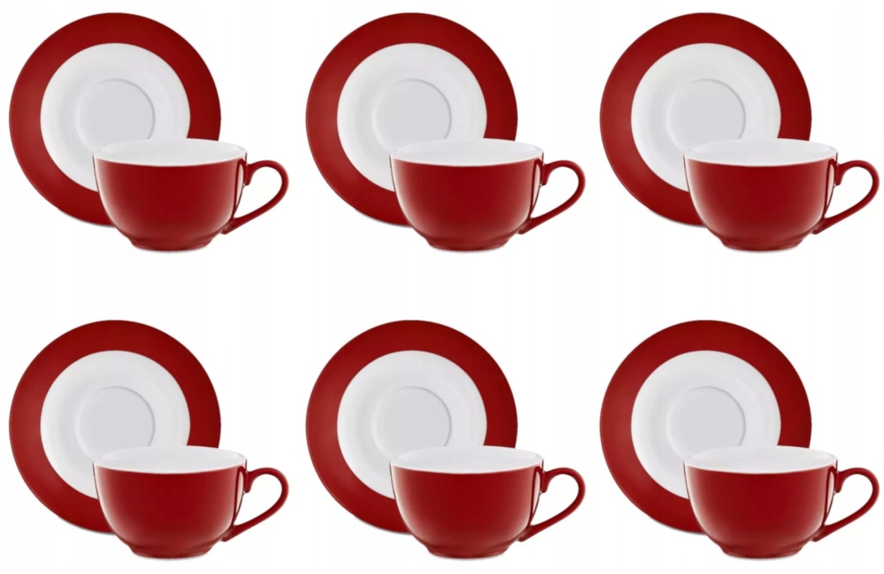 Komplet kawowy Ambition Aura Red 12-elementowy Porcelanowy Do zmywarki