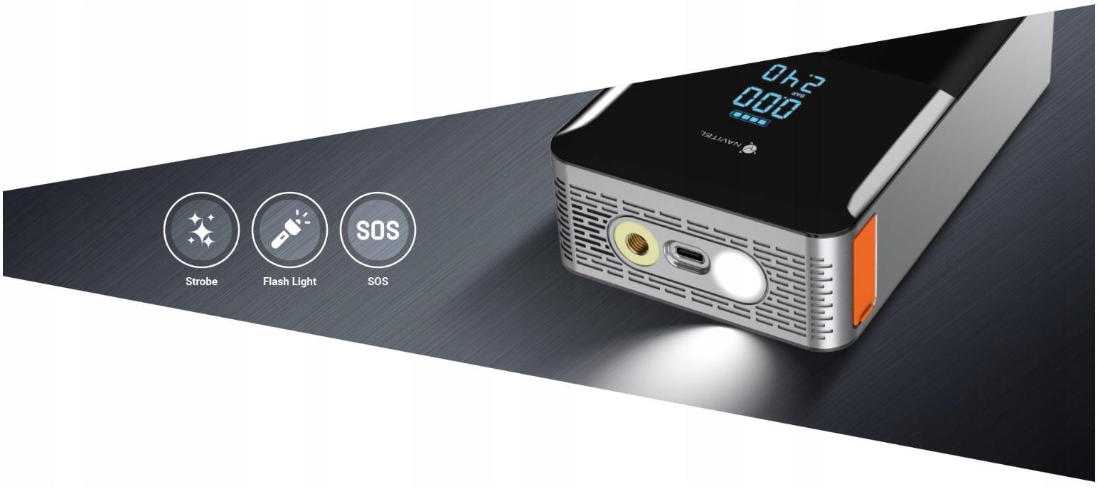 Rozładowany akumulator nie będzie już problemem. NAVITEL AIR 30 MULTI uruchomi silnik, nawet gdy akumulator jest całkiem rozładowany. Wystarczy otworzyć maskę, podłączyć grubsze przewody rozruchowe do kompresora i ich drugi koniec do akumulatora, a następnie uruchomić silnik. To takie proste! Kompresor uruchomi silnik diesla o pojemności do 2,5 litra oraz silnik benzynowy o pojemności do 3 litrów. Jednak należy pamiętać o jak najszybszej wymianie rozładowanego akumulatora!