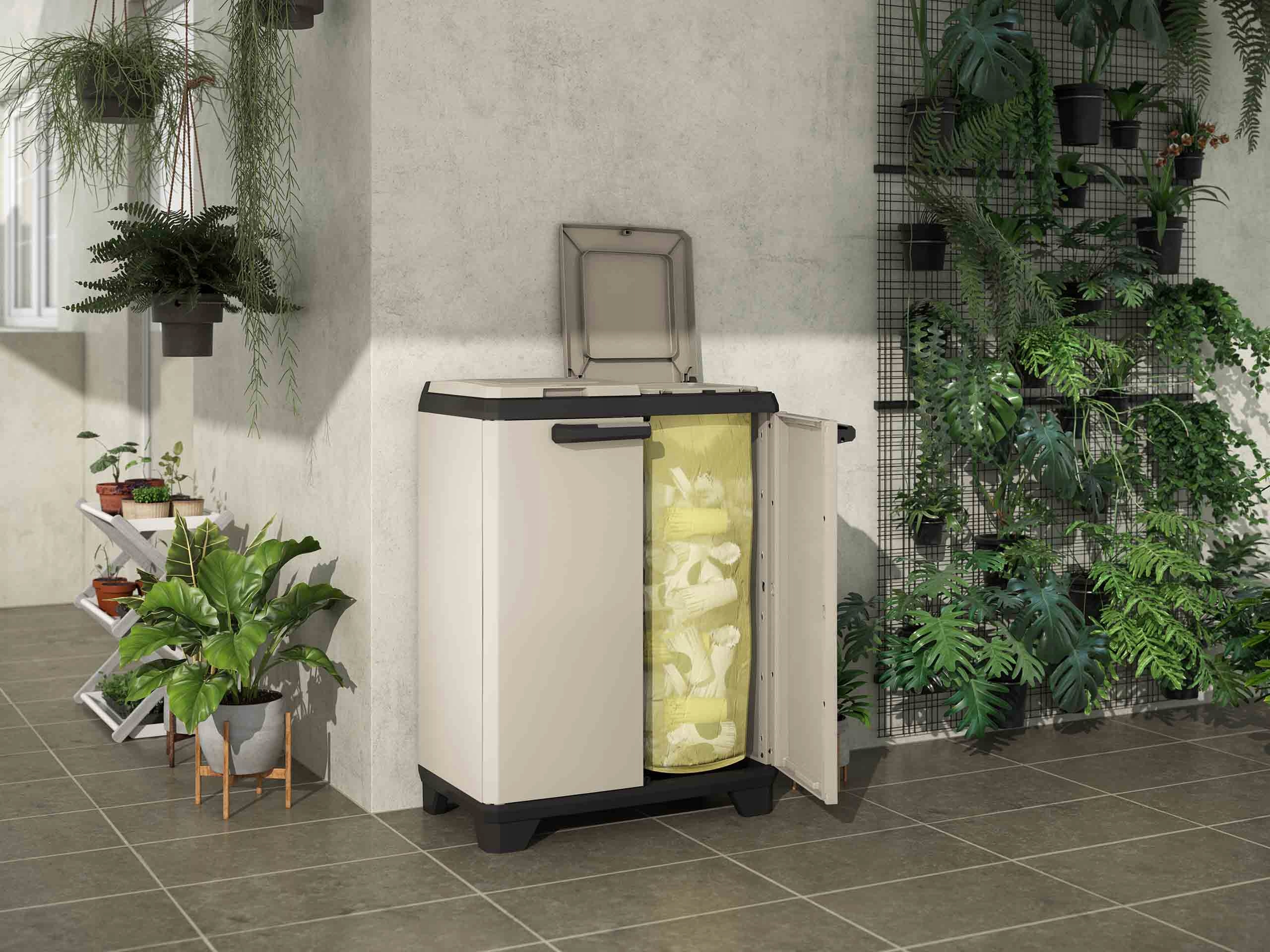 Poręczna szafa do segregacji odpadów to świetna propozycja zarówno do domu jak i na zewnątrz. Wyprodukowana we Włoszech z najwyższej jakości polipropylenu gwarantuje długoletnie użytkowanie. Przemyślana, solidna konstrukcja wyróżnia się niebanalnym wzorem. Stonowana kolorystyka pasować będzie do wielu wnętrz. Kompaktowe wymiary to dodatkowa zaleta tego produktu.