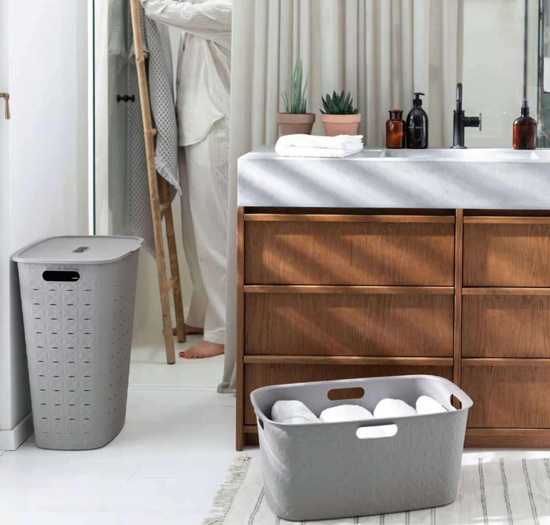 Kosz na pranie Softex o pojemności 56 litrów doda luksusowego, a jednocześnie przyjaznego charakteru każdemu pomieszczeniu. Ten kosz jest nie tylko wygodny w noszeniu, ale także ekologiczny, ponieważ jest wykonany w 70% z materiałów pochodzących z recykli