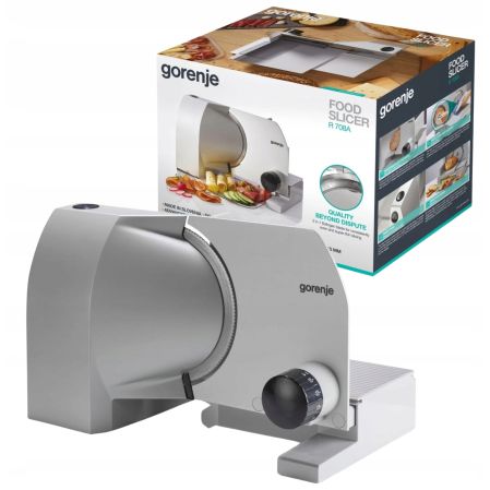 Krajalnica Gorenje zapewnia niespotykaną ochronę w trakcie użytkowania i jest łatwa w rozkładaniu i składaniu dla bezproblemowego utrzymywania urządzenia w gotowości do działania. Obudowa jest wykonana z aluminium a ostrza z najwyższej jakości stali nierdzewnej. Tacka na którą spada krojona żywność jest nieznacznie przechylona do łatwego odbierania żywności.