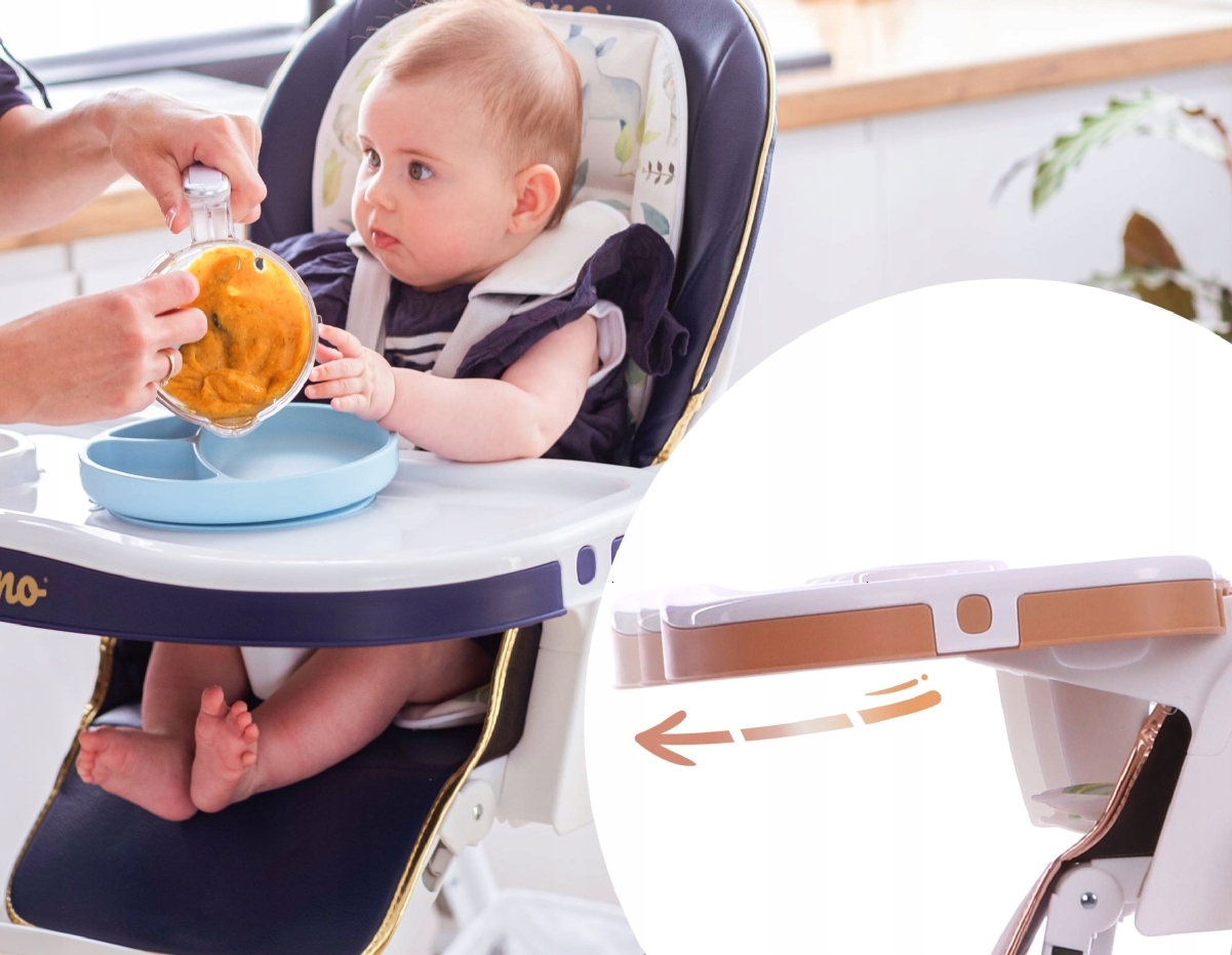 Z Neno Sedi niestraszne Ci hektolitry wylanej zupki i rozgniecione kluski. Podczas karmienia malucha w mgnieniu oka docenisz praktyczne właściwości tacki. Podwójny blat można łatwo wyczyścić lub zdjąć jego wierzchnią warstwę, aby uzyskać ukrytą pod spodem czystą powierzchnię.