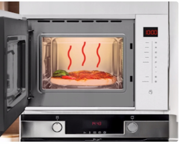 Kilka punktów emisji mikrofal w połączeniu z obrotowym talerzem pozwalają równomiernie podgrzać całą potrawę, zarówno na zewnątrz, jak i w środku.