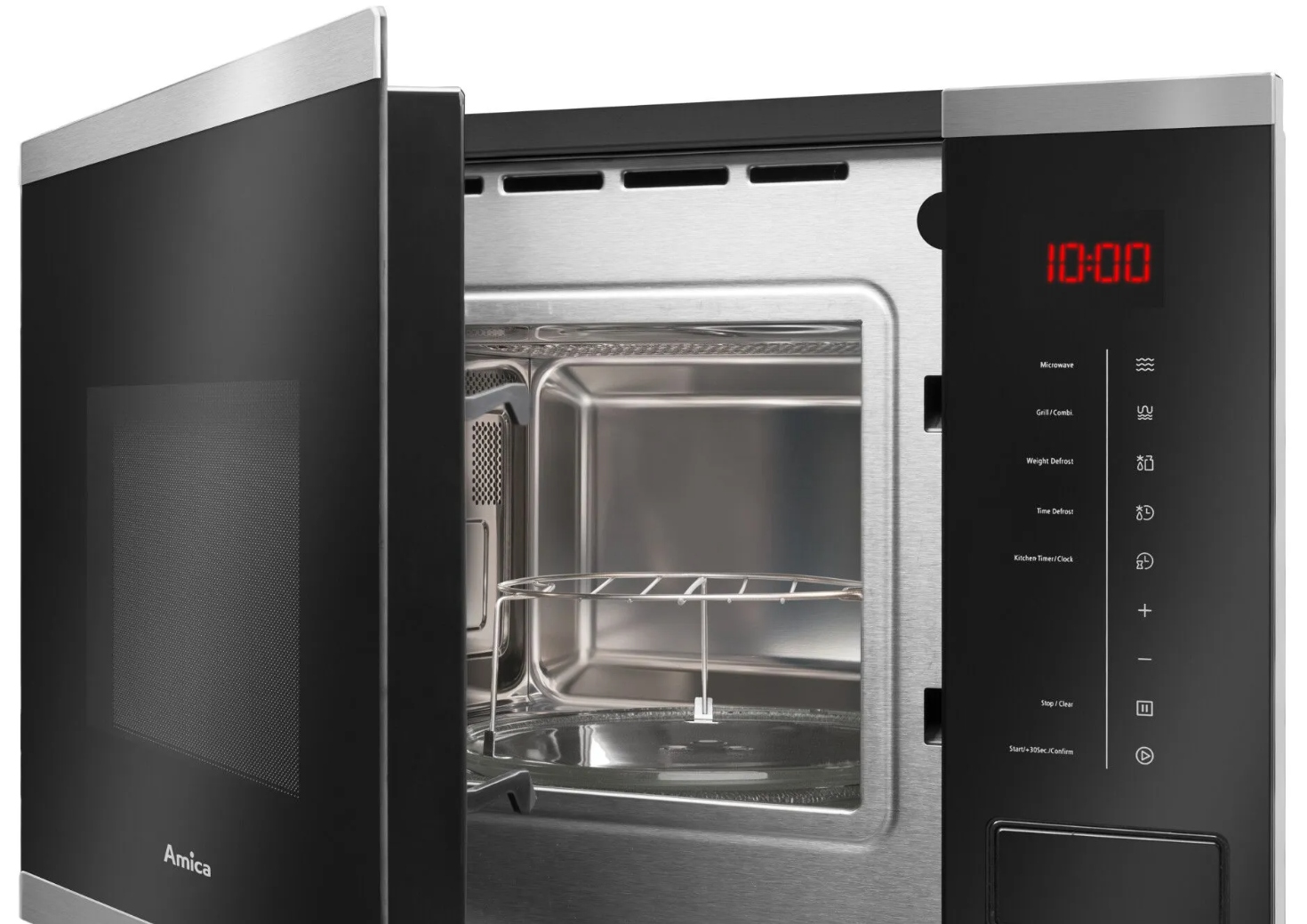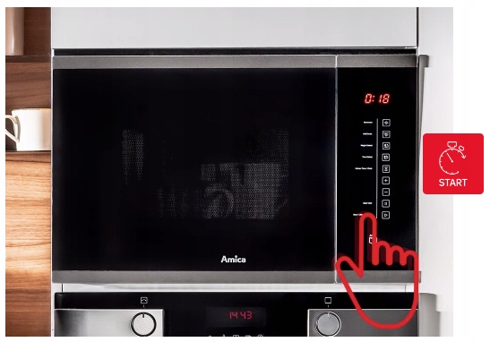 Wnętrze kuchenki mikrofalowej Amica jest zawsze dobrze oświetlone – dla pełnej kontroli podgrzewanego dania.
