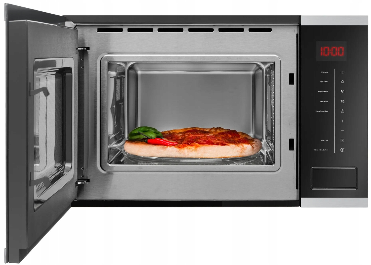 Kuchenka mikrofalowa do zabudowy o pojemności 20l, mocy mikrofal 800W i mocy grilla 1000W.