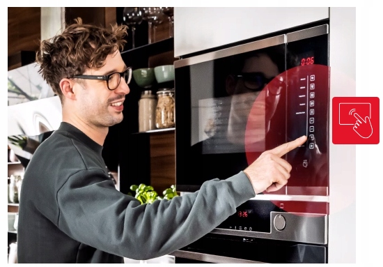 Steruj wygodnie i nie trać czasu na sprzątanie! Szybciej znajdziesz i ustawisz pożądany program, korzystając z dotykowych sensorów zamiast standardowych pokręteł i mechanicznych przycisków. Czujniki znajdują się pod płaską powierzchnią panelu sterowania, dzięki temu łatwiej utrzymasz front mikrofalówki w czystości – bo brak zakamarków to brak miejsca na brud. Steruj z przyjemnością!