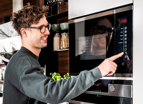Steruj wygodnie i nie trać czasu na sprzątanie! Szybciej znajdziesz i ustawisz pożądany program, korzystając z dotykowych sensorów zamiast standardowych pokręteł i mechanicznych przycisków. Czujniki znajdują się pod płaską powierzchnią panelu sterowania, dzięki temu łatwiej utrzymasz front mikrofalówki w czystości – bo brak zakamarków to brak miejsca na brud. Steruj z przyjemnością!