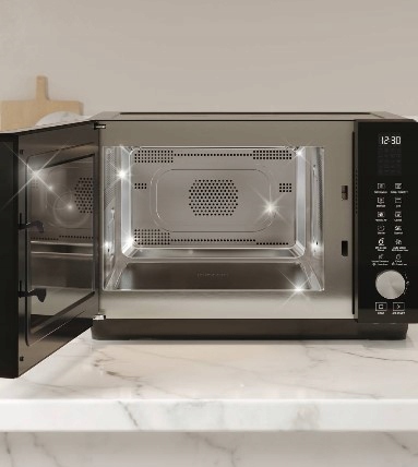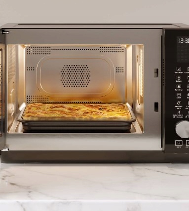 Zastosowanie mikrofal przyspiesza proces, umożliwiając szybkie przygotowanie jedzenia.Talerz Crisp wykonany z ferrytu nie nagrzewa się powyżej 210°C, co pozwala uniknąć rozgotowania jedzenia, a funkcja grilla zapewnia idealnie chrupiącą skórkę.