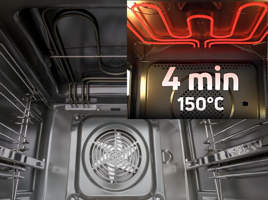 Jesteś w ciągłym biegu i na wszystko brakuje Ci czasu? Funkcja umożliwia bardzo szybkie nagrzanie piekarnika do wybranej temperatury. Włącza grzałki termoobiegu i grzałkę dolną lub wzmocniony grill oraz wentylator, wykorzystując w ten sposób pełną moc piekarnika do szybkiego nagrzania komory. Piekarnik możesz włączyć chwilę przed przystąpieniem do pieczenia i mieć pewność, że ze wszystkim zdążysz na czas!