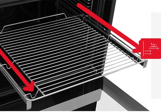 Możliwość pieczenia na dowolnym poziomie oraz wygodne wysuwanie i wsuwanie blach.