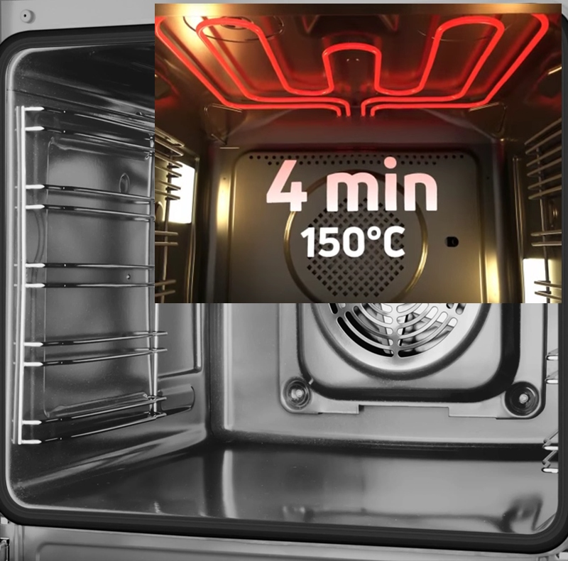 Jesteś w ciągłym biegu i na wszystko brakuje Ci czasu? Funkcja umożliwia bardzo szybkie nagrzanie piekarnika do wybranej temperatury. Włącza grzałki termoobiegu i grzałkę dolną lub wzmocniony grill oraz wentylator, wykorzystując w ten sposób pełną moc piekarnika do szybkiego nagrzania komory. Piekarnik możesz włączyć chwilę przed przystąpieniem do pieczenia i mieć pewność, że ze wszystkim zdążysz na czas!