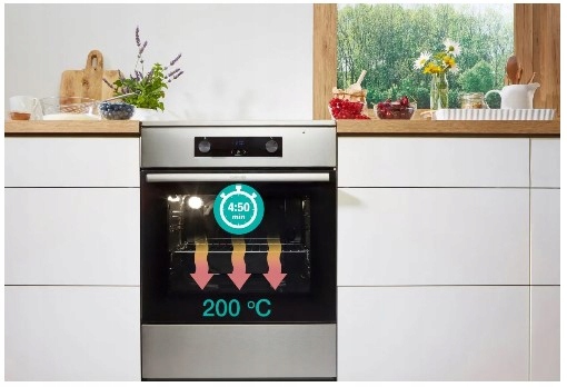 Piekarniki OptiBake osiągają temperaturę do 200˚C w zaledwie 4,50 minuty, co pozwala zaoszczędzić 30% czasu potrzebnego na standardowe podgrzewanie i czyni je jednymi z najszybszych piekarników na rynku.Jest to bardzo wygodne w przypadku przepisów, które wymagają wstępnie rozgrzanego piekarnika. Sygnał świetlny i dźwiękowy informuje, kiedy temperatura jest w sam raz.