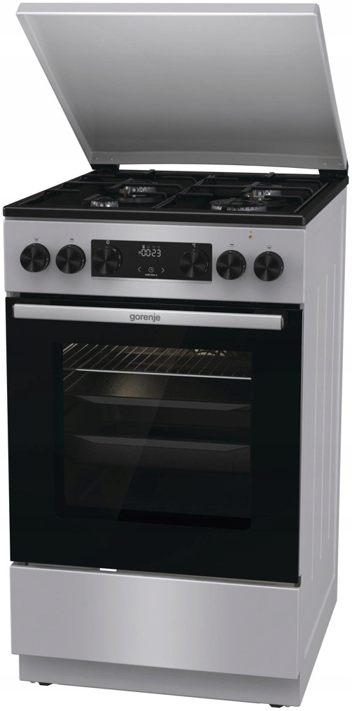 Kuchnia gazowo-elektryczna Gorenje GK5C42SJ to funkcjonalne urządzenie o szerokości 50 cm, wyposażone w piekarnik o pojemności 62 litrów z funkcją AquaClean ułatwiającą czyszczenie. Dzięki timerowi i czterem palnikom gazowym zapewnia wygodę gotowania oraz precyzyjną kontrolę nad procesem pieczenia.