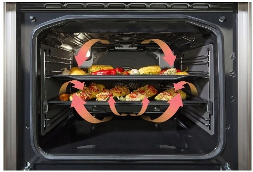 Technologia MultiAir gwarantuje optymalny obieg ciepła wewnątrz piekarnika. Dzięki sprytnie rozmieszczonym otworom wentylacyjnym na tylnej ścianie oraz unikalnemu, zaokrąglonemu kształtowi, powietrze jest równomiernie rozprowadzane w całym piekarniku. Wentylator przepycha gorące powietrze wokół całej objętości piekarnika, dzięki czemu potrawy są idealnie upieczone z każdej strony. Dynamiczny ruch powietrza umożliwia również jednoczesne pieczenie na wielu poziomach bez mieszania się zapachów i smaków.