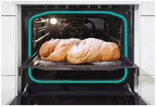 Technologia MultiAir gwarantuje optymalny obieg ciepła wewnątrz piekarnika. Dzięki sprytnie rozmieszczonym otworom wentylacyjnym na tylnej ścianie oraz unikalnemu, zaokrąglonemu kształtowi, powietrze jest równomiernie rozprowadzane w całym piekarniku. Wentylator przepycha gorące powietrze wokół całej objętości piekarnika, dzięki czemu potrawy są idealnie upieczone z każdej strony. Dynamiczny ruch powietrza umożliwia również jednoczesne pieczenie na wielu poziomach bez mieszania się zapachów i smaków.