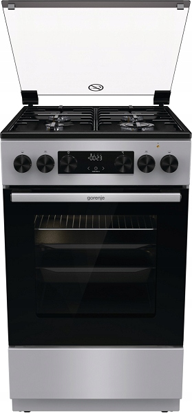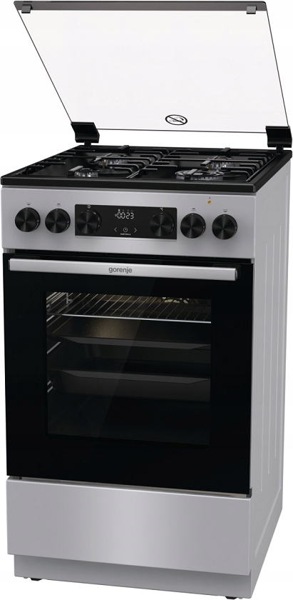 Wolnostojąca kuchnia gazowo-elektryczna marki Gorenje, o szerokości 50cm z dotykowym programowaniem godziny.