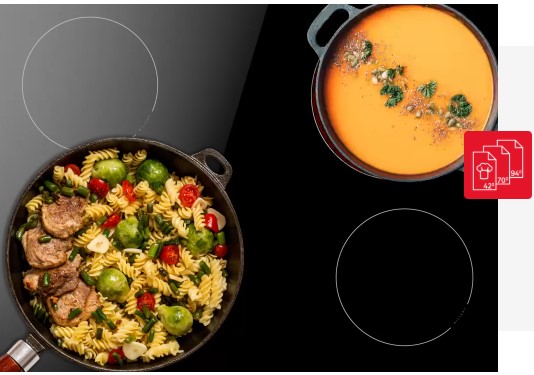 Obiad dla dużej rodziny? Funkcja AutoBridge pozwala na gotowanie w większych garnkach na obu polach jednocześnie! Płyta wykrywa duże naczynie i automatycznie łączy pola w strefę grzania odpowiadającą kształtowi garnka. To intuicyjne rozwiązanie sprawia, że gotujesz szybciej i efektywnie!