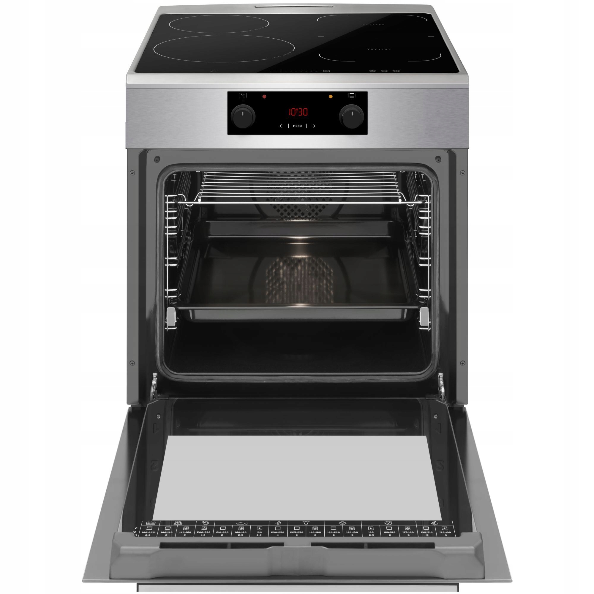 Praktyczny poradnik z parametrami pieczenia na wewnętrznej stronie drzwi.