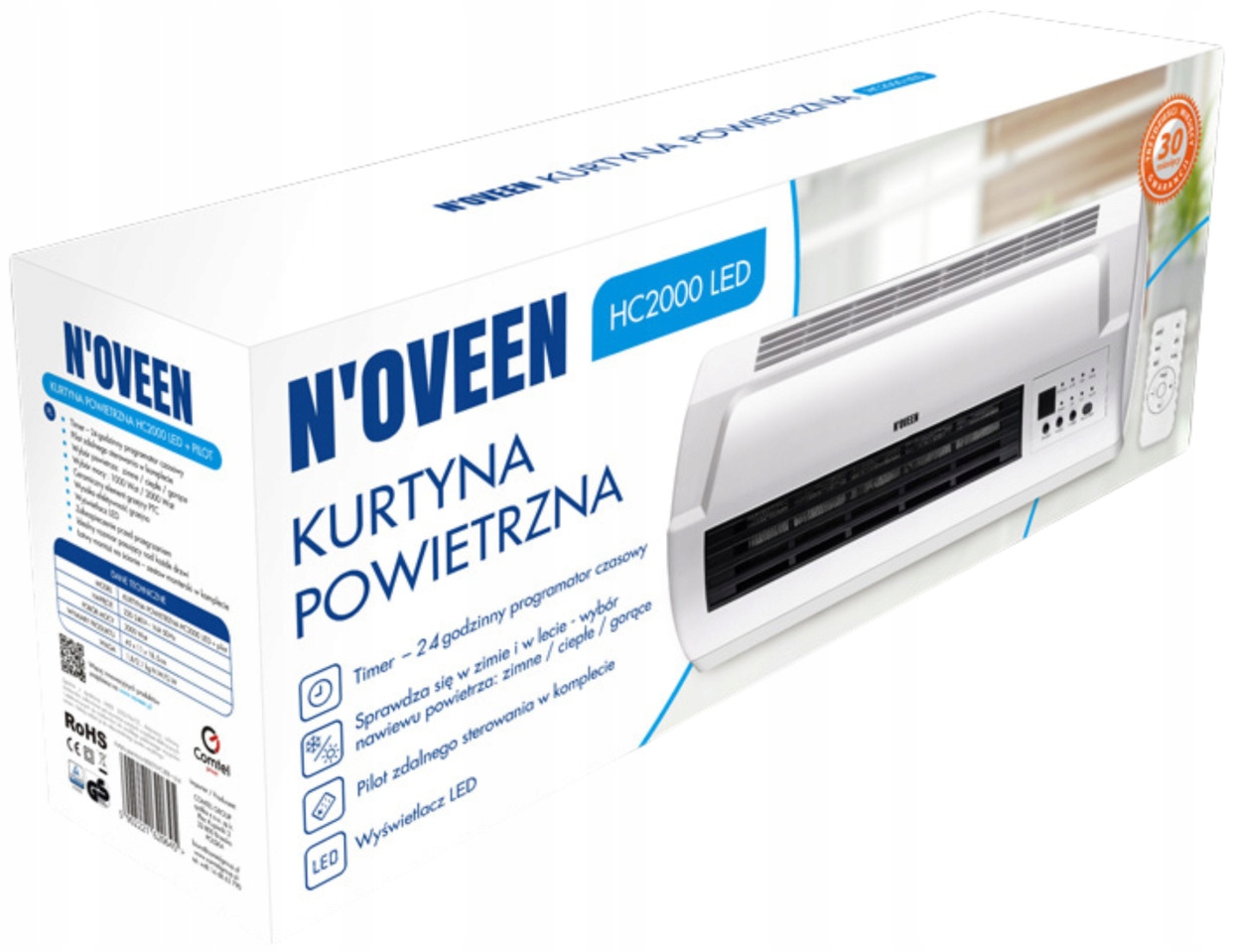 Kurtyna powietrzna Noveen HC2000 Timer Pilot Wybór powietrza LED