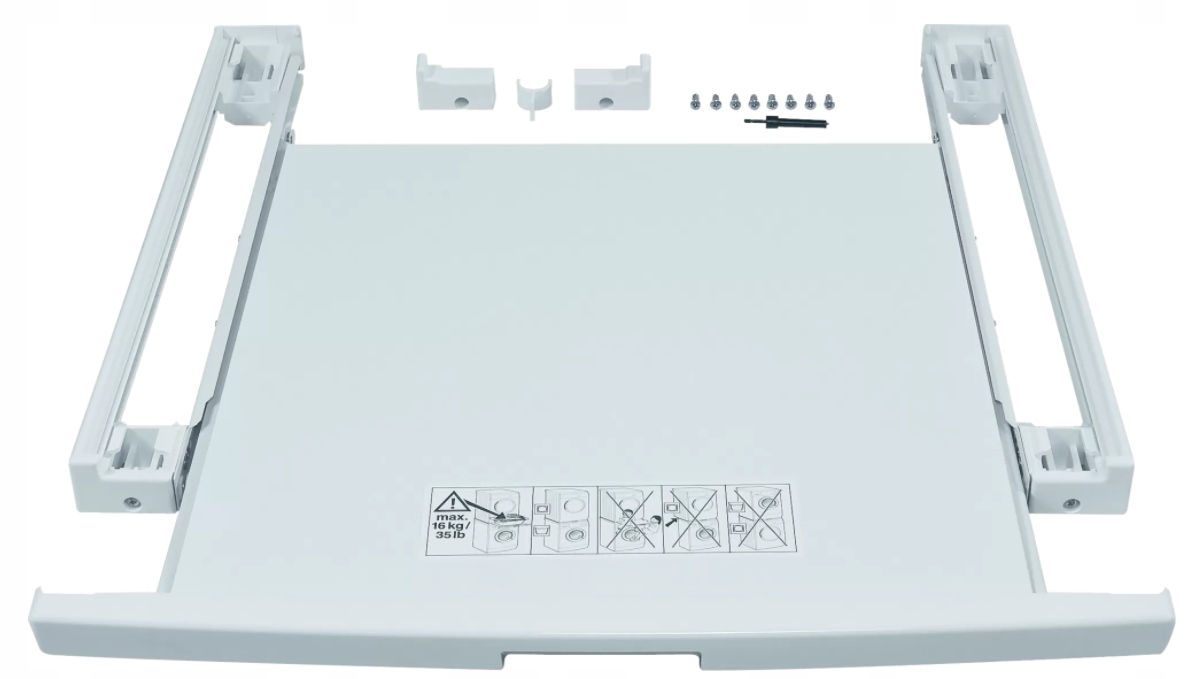- Łącznik z wysuwaną szufladą służący do postawienia suszarki na pralce, Do Serii IQ800. WT45H… , WT45W… , WT7H…. na pralce fullsize
