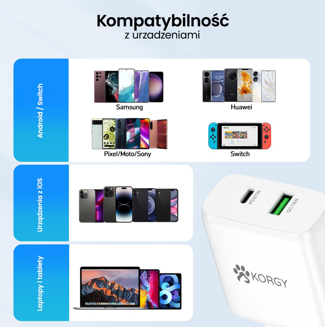 Ładowarka sieciowa Korgy K-AC67-AC-B 67W USB-C Szybkie ładowanie